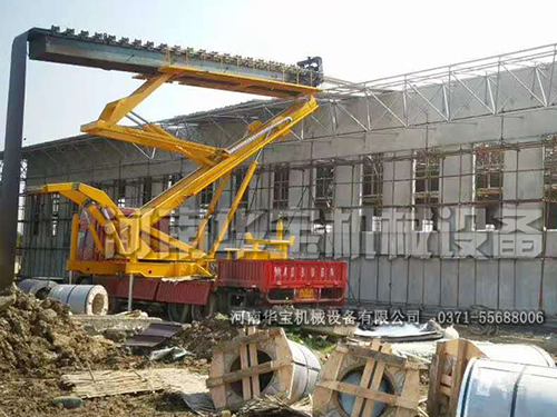 壓瓦機(jī)可以將彩鋼卷壓縮成型直接傳輸?shù)轿蓓斏?,該設(shè)備使用遙控操作的,360度旋轉(zhuǎn),可以舉升高度23米,可以載重18噸,升舉高度可以根據(jù)客戶的需求來制作的。